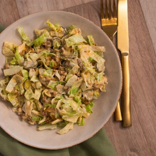 - Den Big Mac Salat am besten sofort servieren, solange das Hackfleisch noch warm ist – so schmeckt er besonders aromatisch.