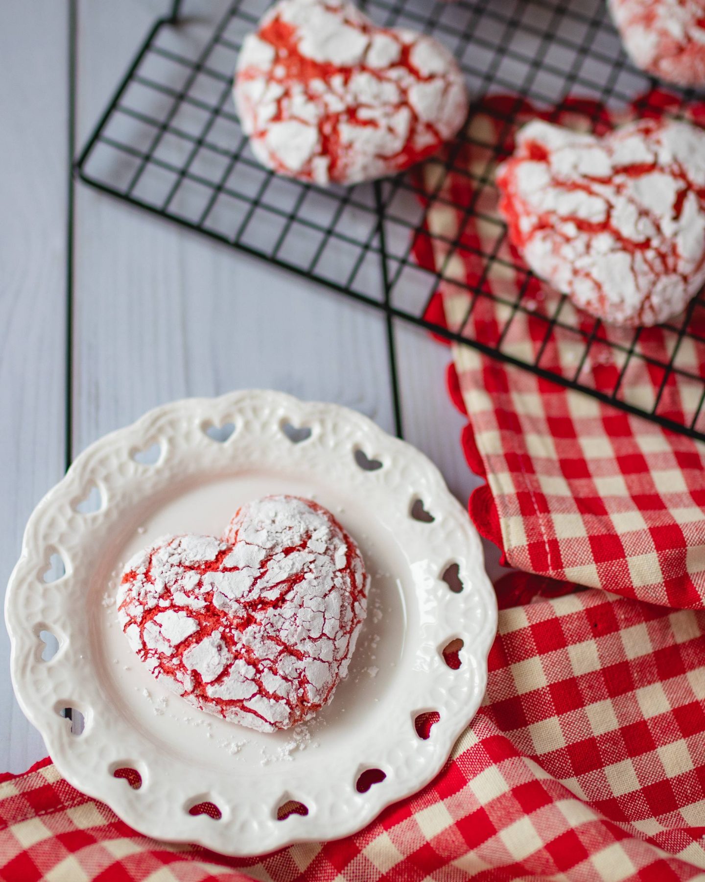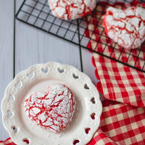 - Nach der Kühlzeit Portionen abnehmen, zu Kugeln rollen, großzügig im Puderzucker wälzen und anschließend vorsichtig zu Herzformen drücken. Die Herzen mit etwas Abstand auf ein mit Backpapier belegtes Blech legen.