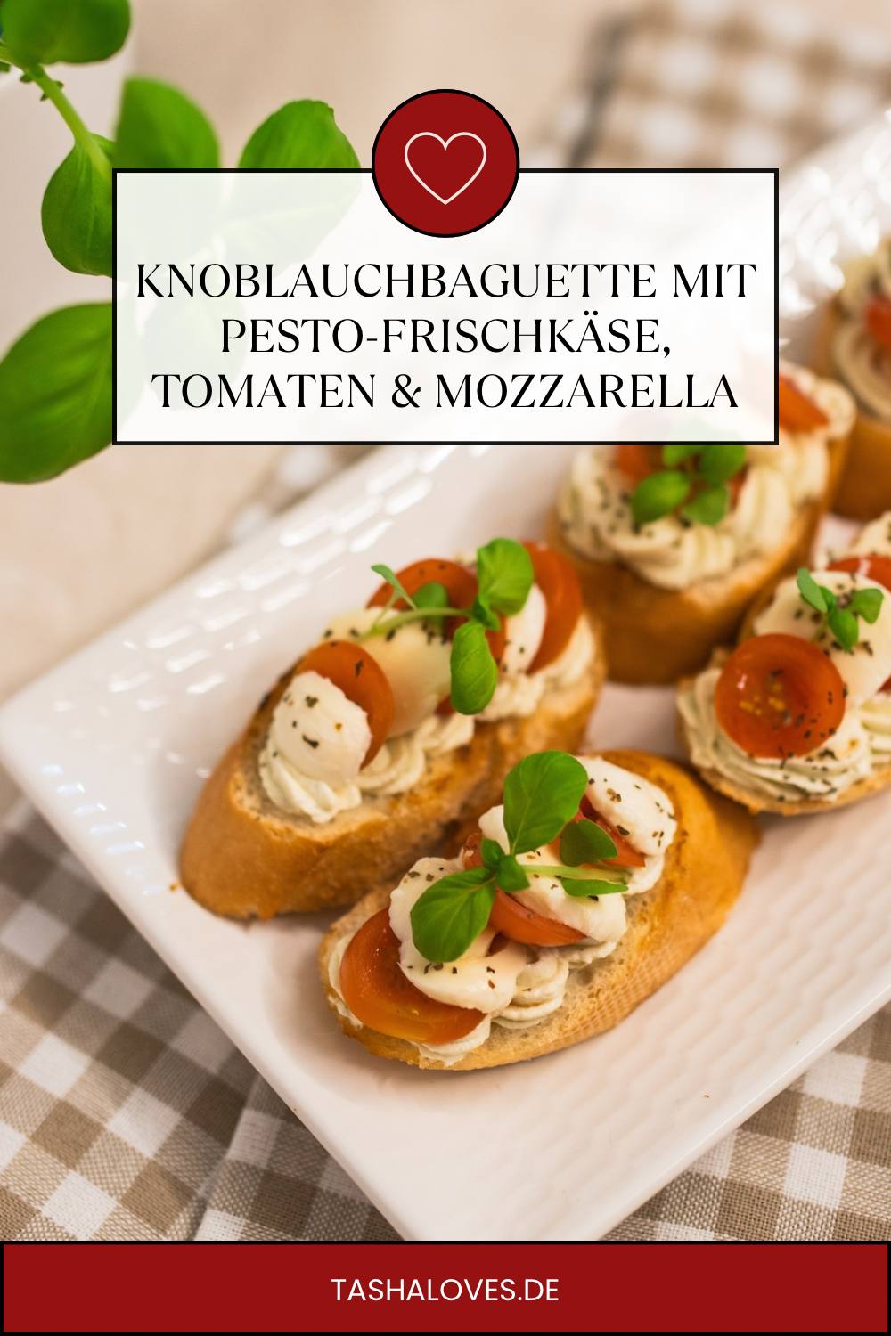 Knoblauchbaguette mit Pesto-Frischkäse, Tomaten & Mozzarella
