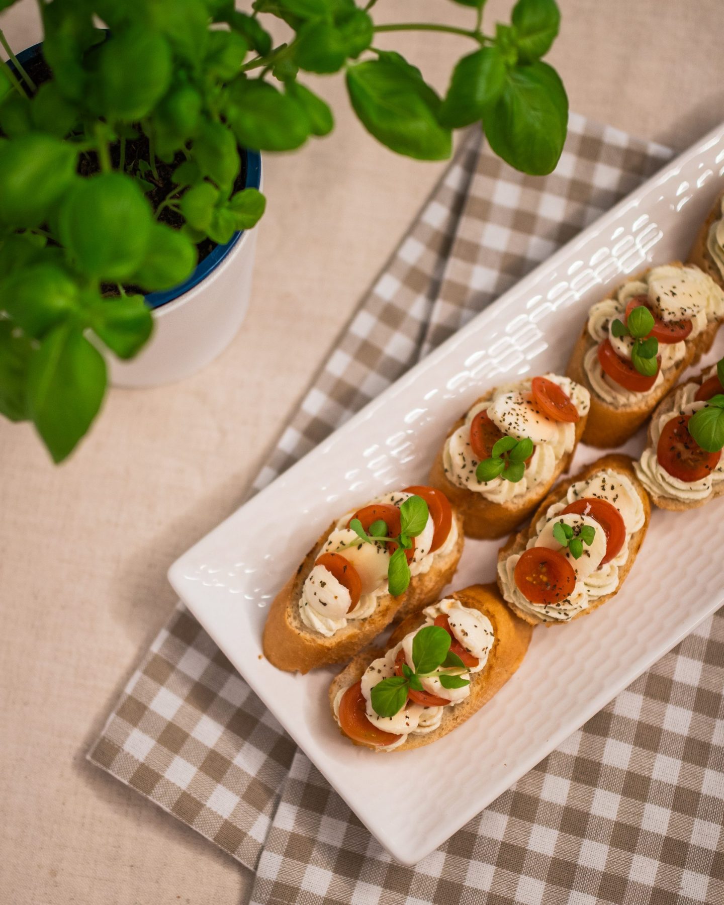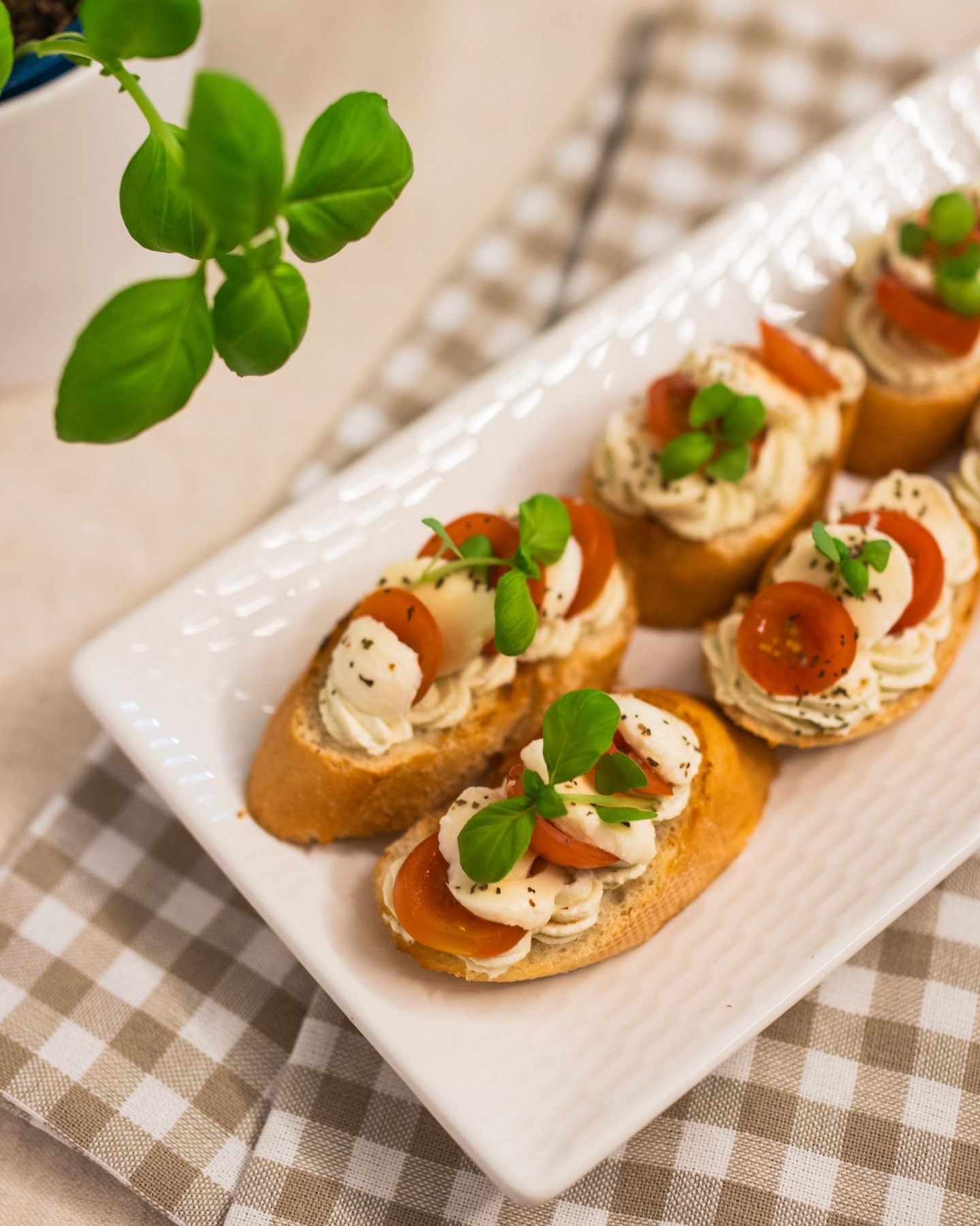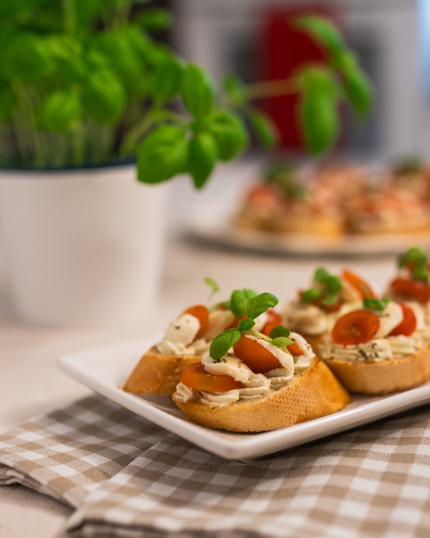 Abgerundet wird alles mit trockenem und frischem Basilikum. Das sorgt nicht nur für zusätzlichen Geschmack, sondern macht die Häppchen auch optisch zu einem echten Hingucker.