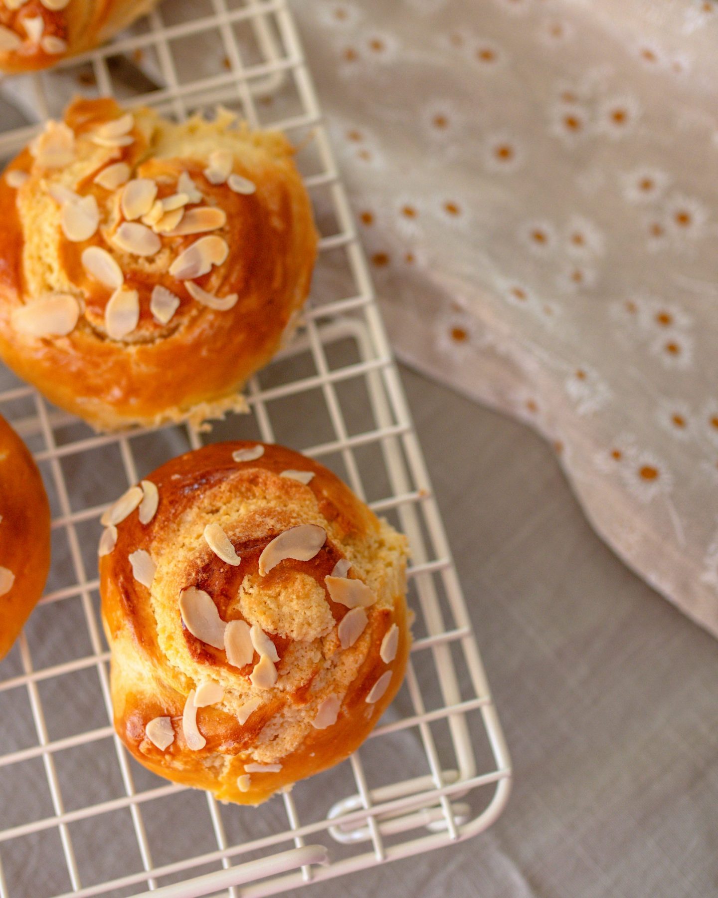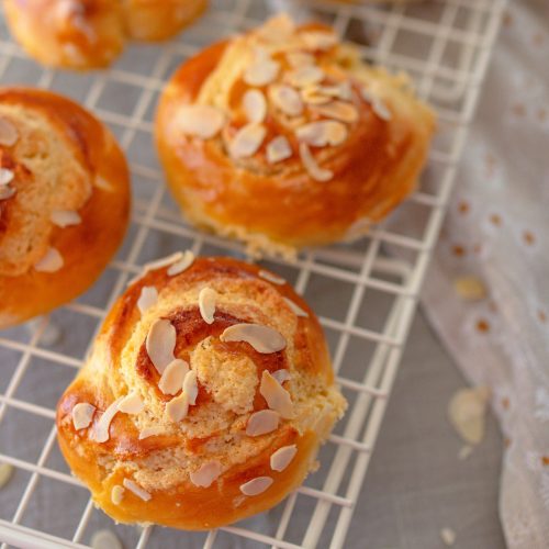 Ein weiterer Vorteil: Mandelschnecken lassen sich wunderbar vorbereiten, schmecken auch am nächsten Tag noch saftig und eignen sich hervorragend zum Mitnehmen oder Einfrieren.