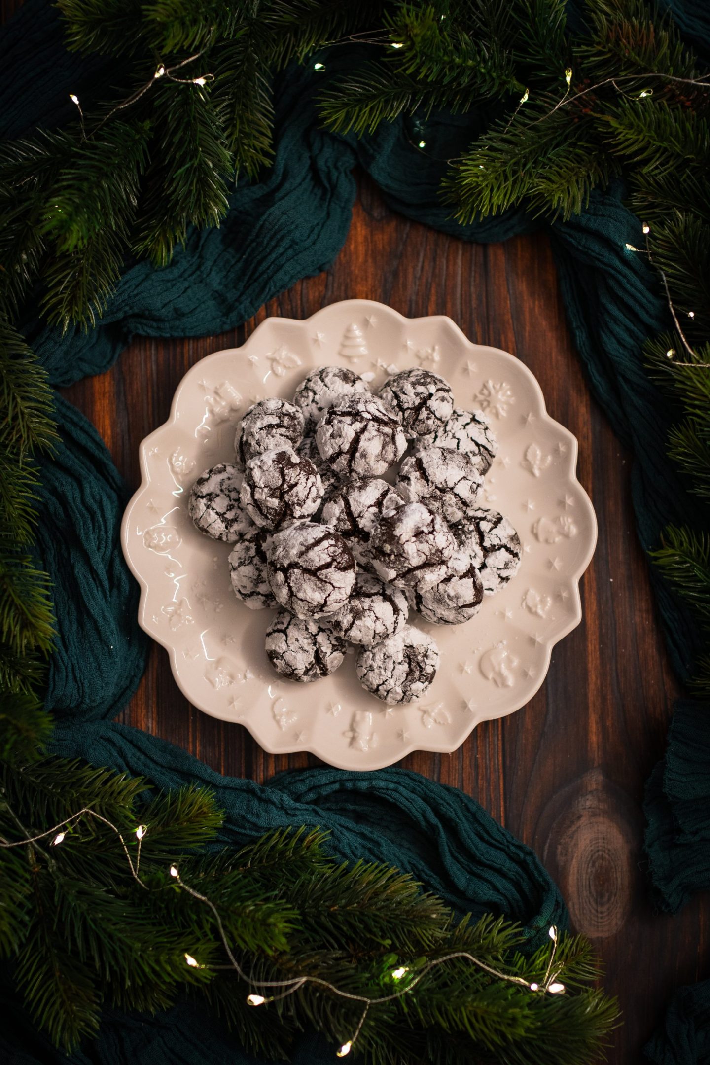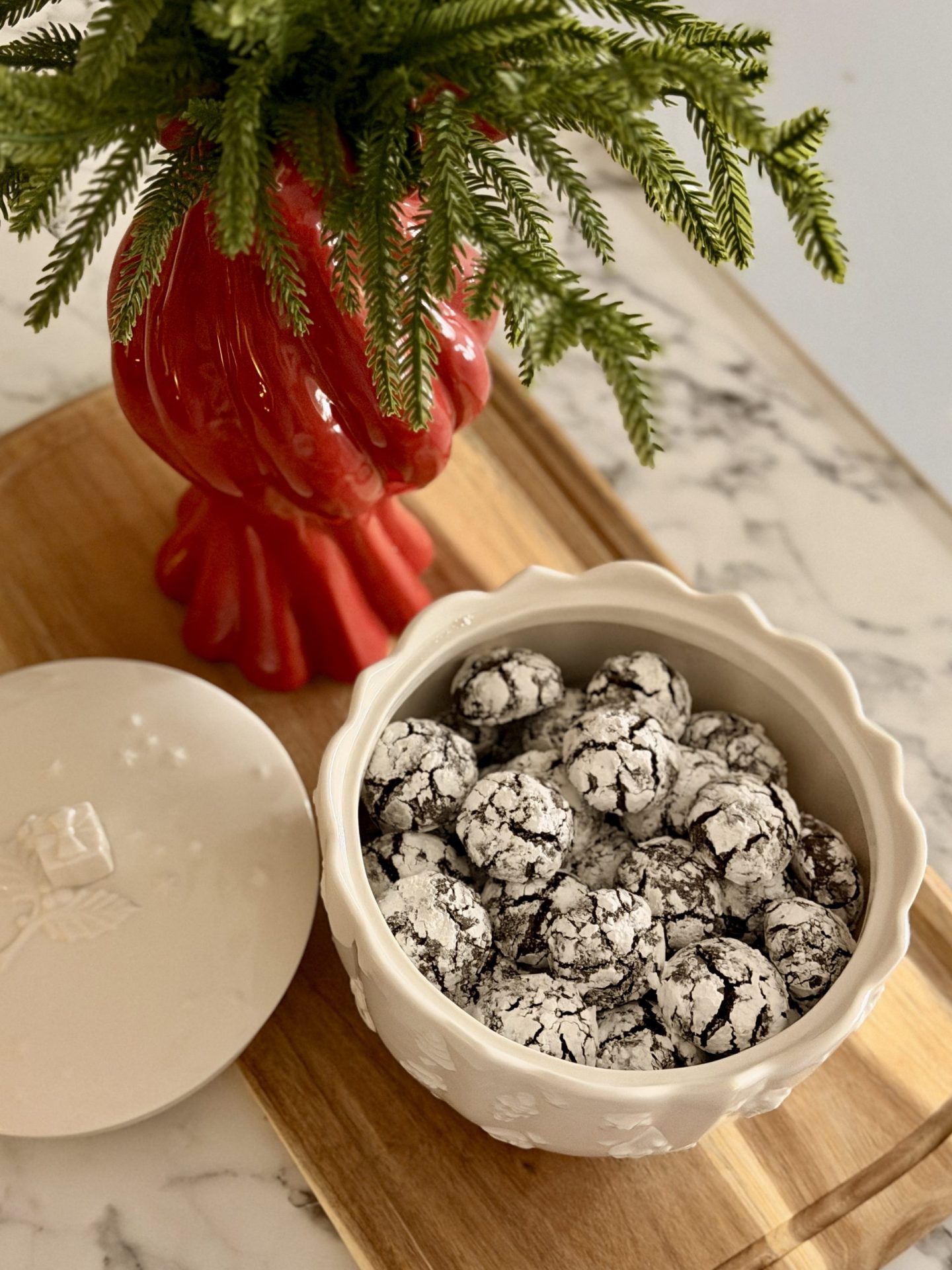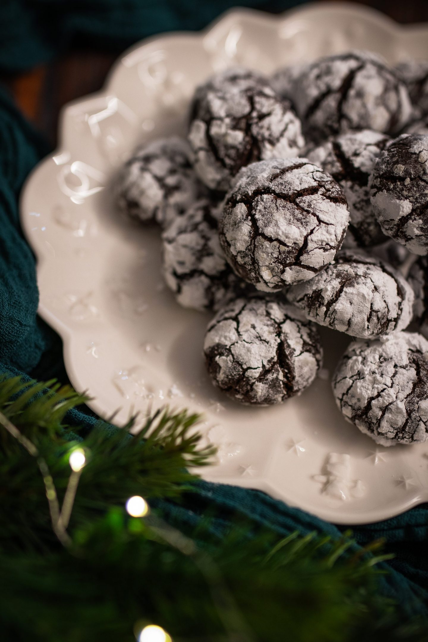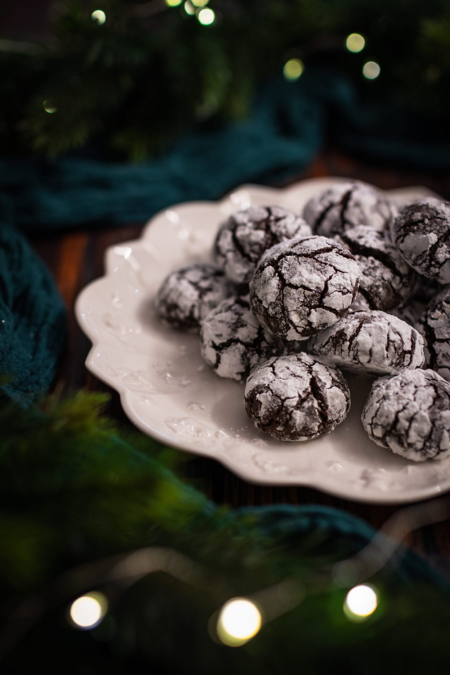 Diese Plätzchen sind nicht nur geschmacklich ein Highlight – sie sehen auch spektakulär aus. Die typische Crinkle-Optik entsteht durch das Rollen der Teigkugeln in Puderzucker. Beim Backen entstehen feine, hübsche Risse, die die dunkle Schokolade wunderschön hervorblitzen lassen.